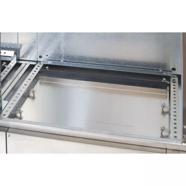 Composta per 2 elements realitzats en acer inoxidable AISI 304L (Wnr 1.4307), es pot utilitzar com a substituta de la brida d'estanquitat estàndard, quan en aquesta zona no hi ha exigències especials d'estanquitat. Gràcies a un sistema de juntes i a la possibilitat de regulació, simplifica considerablement la maniobra d'introducció dels cables per sota de l'armari. La versió per a armaris amb porta davantera i posterior està disponible per a la profunditat de 800 mm.