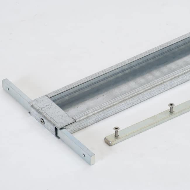 Placa galvanitzada, motllurada i dissenyada per donar continuïtat a les plaques de muntatge dels armaris sèrie EGO i SPEED.