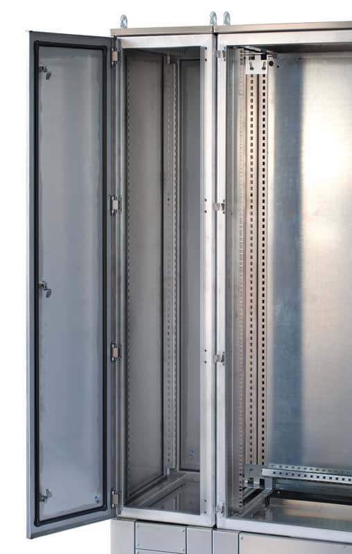 - Marco de vigas esp=20/10 plegadas y perforadas con paso DIN 25 mm, que se puede equipar con paneles en todos los lados;