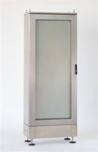 - Puerta frontal reversible con un robusto panel transparente en LEXAN anti-golpe que se puede abrir a 120°.
